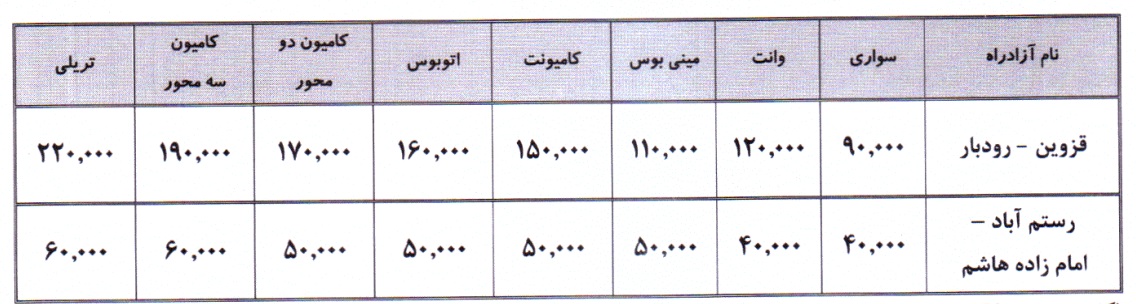 مبلغ تعرفه خودروهای عبور چقدر است؟